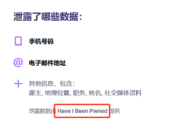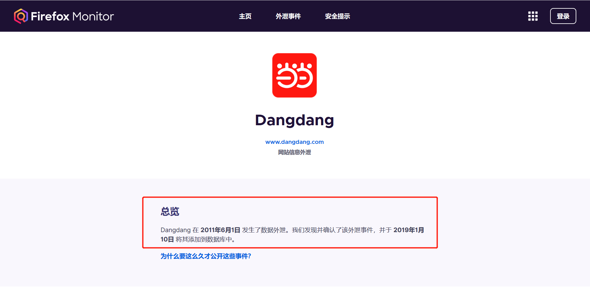 下面显示每次泄露事件的摘要,以及主要泄露的内容。点开可以查看详细泄露事件。