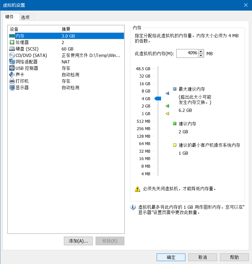 经验:vm虚拟机内存不是越大越好。太大了,虚拟机也不快,本机系统也完蛋。