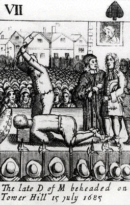蒙茅斯公爵是查理二世的私生子之一,对1685年失败的蒙茅斯叛乱负有责任,当时他试图利用他的新教信仰篡夺他的天主教叔叔。结果,他于 15 年 1685 月 <> 日被判处死刑。