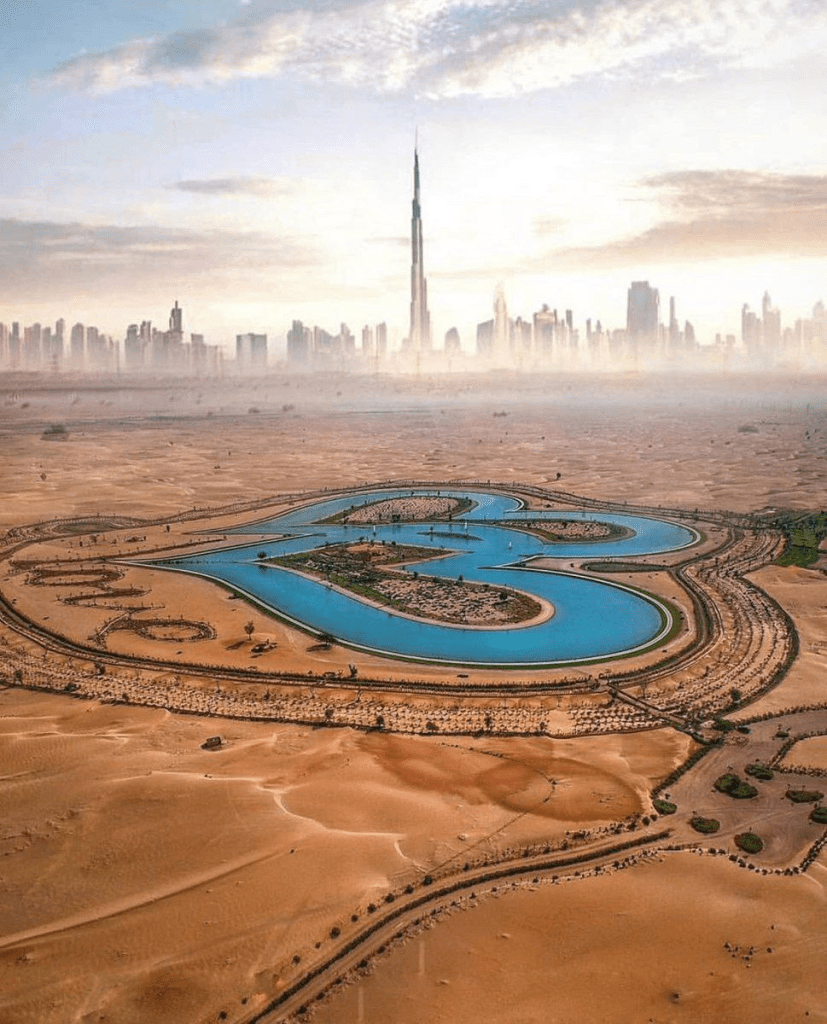 爱之湖距离迪拜的城市街区很远,看起来像一个被沙漠包围的真正绿洲。除了心形湖泊本身外,这里还种植了数千棵灌木,约16,000棵树和无数鲜艳的花朵。