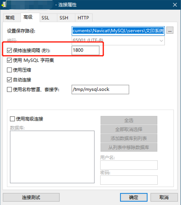 NaviCat链接Mysql一会儿不用就断开卡死怎么办?