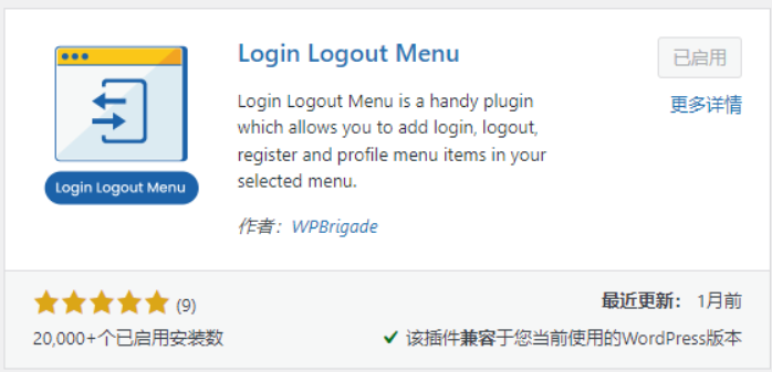 还好,Wordpress有数不尽的插件,下面给你推荐一个极简、超清的插件:Login Logout Menu. 从 Wordpress 插件市场下载对应插件,启用。
