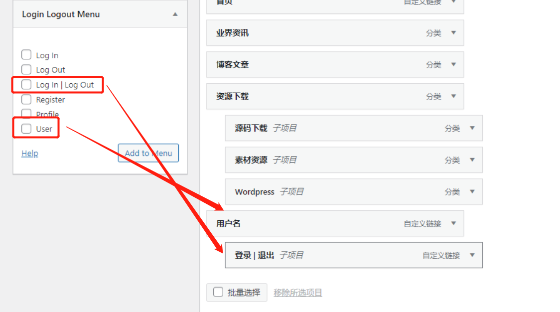 这个插件的设置是极简的,他压根就不需要设置。使用方法直接进入 Wordpress 菜单管理,添加对应菜单项就ok了。大概是这样式的。