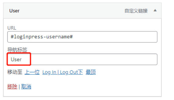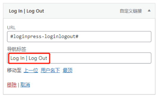其实只添加 Log in | Log out,就可以实现 自动显示登录/登出效果。此处我又添加了一个 user菜单项,并把 log in | log out 设置成 user的下一级菜单。这么做的好处是,登录之前,会直接显示 “登录” 按钮.
