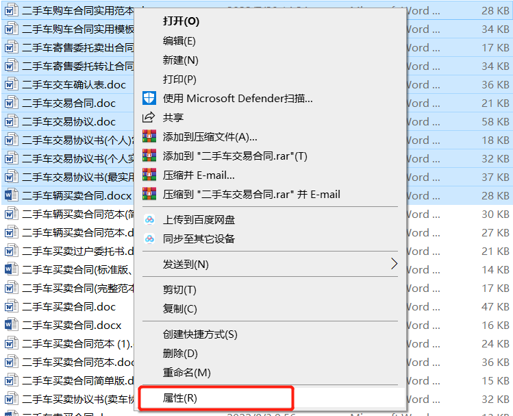 对于很多office文件,删除个人信息也很简单,只需要全选要删除信息的文档,右击,选择属性。