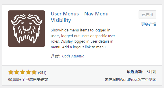 首先,在 Wordpress 插件市场,搜索"User Menus",选择安装