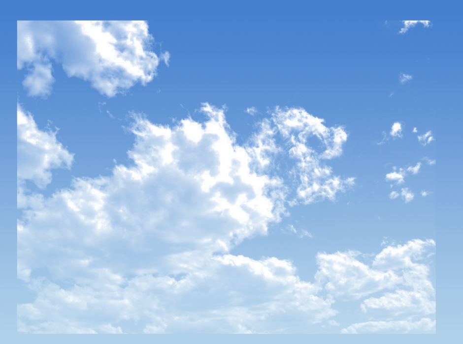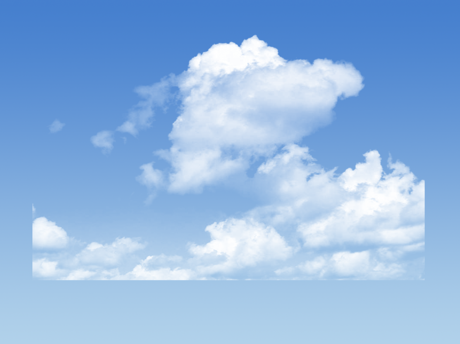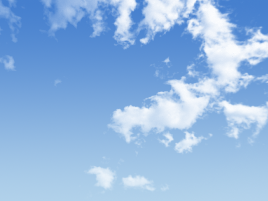 因为是白云笔刷,所以在白色背景上是看不出效果的,就像乌云一样难看。实际做法是先通过渐变做一个蓝天出来,然后,再新建图层,使用白云笔刷,就像下面这样。