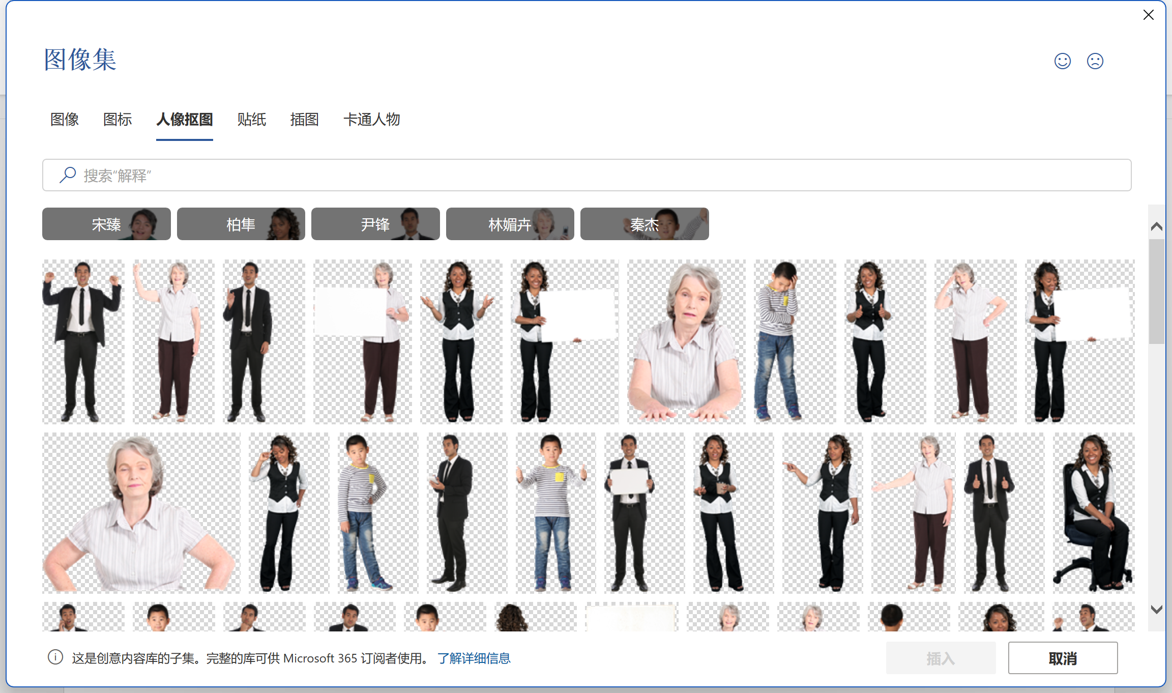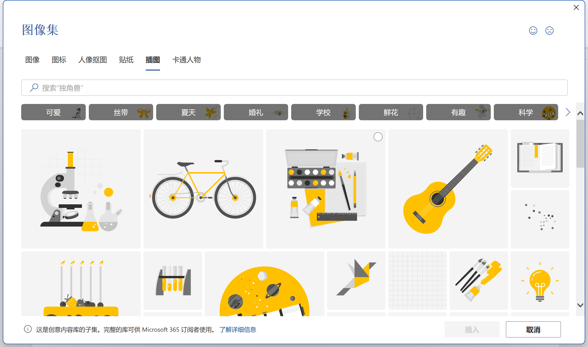可以看出微软现在提供的素材还是很好看的,不像之前的剪贴画,那么古老那么丑。