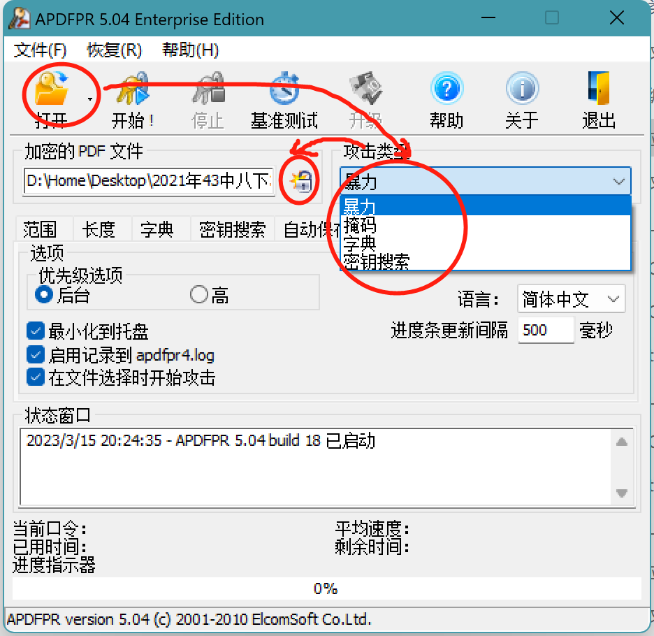 这是一款来自ElcomSoft公司的破解软件,破解方法包括:暴力破解、掩码、字典和密钥搜索四种。