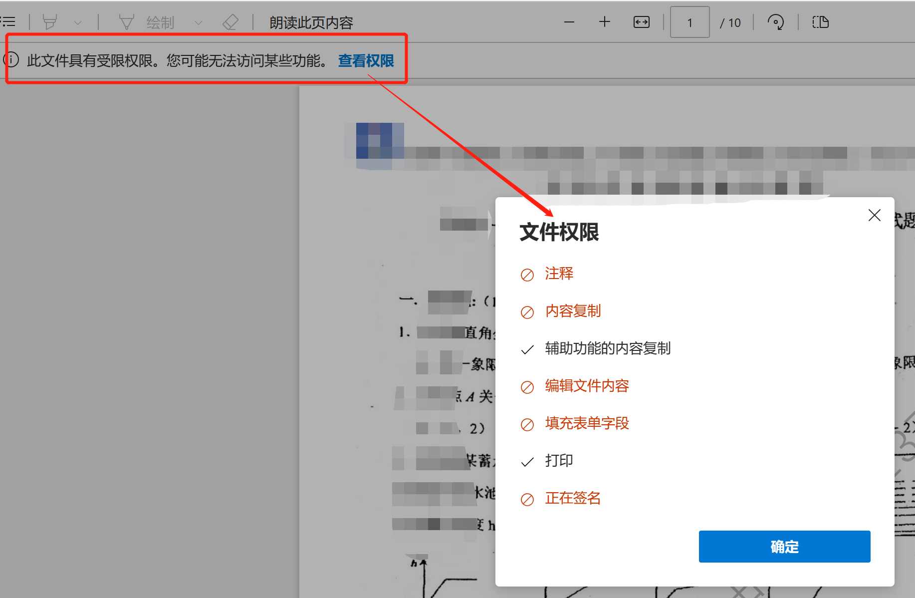 有人给PDF设置了密码,别人就不能随意编辑了。比如,这是一个加密的PDF文档,权限只有打印和辅助功能的内容复制,但我发现文档中有错误,想要修改就必须知道密码,可文档又不是我的,嗯~只能破解密码了。下面说说我是怎么破解PDF密码的。