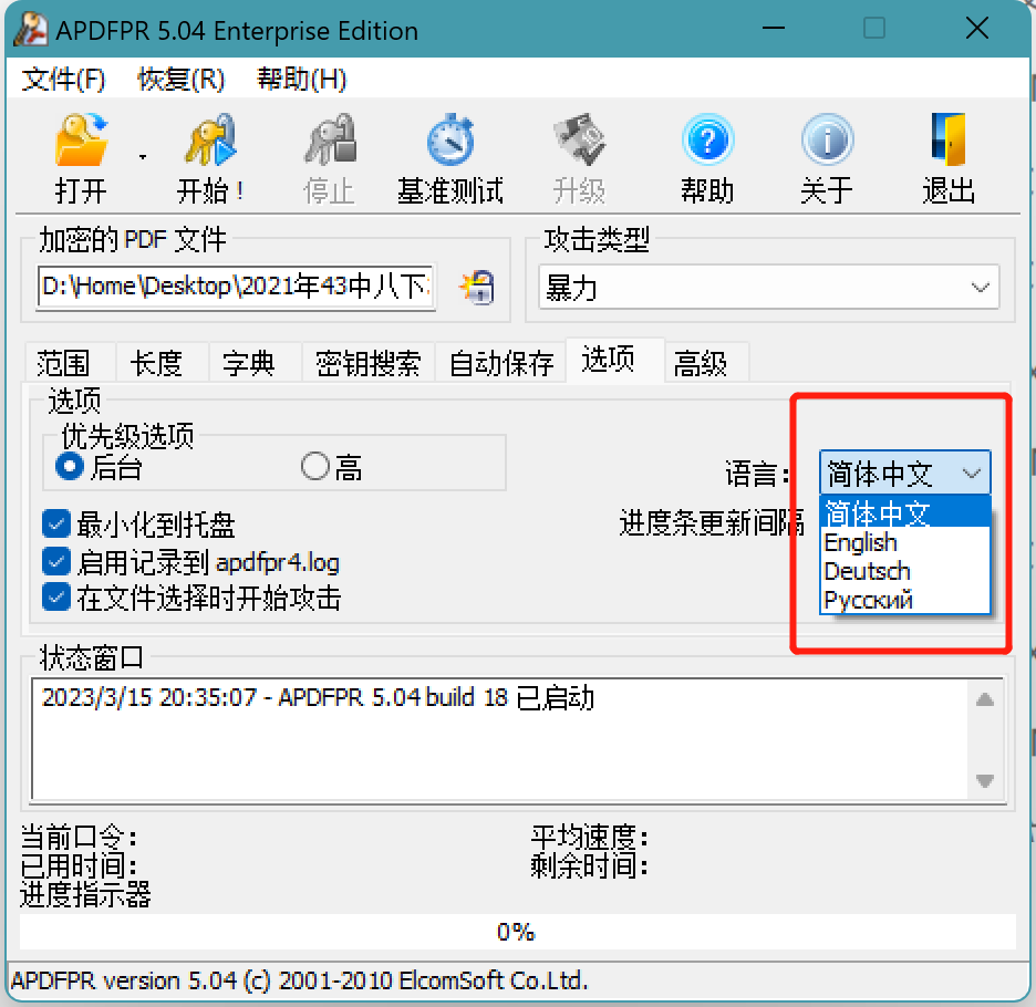 本文不会再介绍一堆国产的收费PDF工具,那些软件太恶心了。我要说的一款经典的PDF密码破解工具:Advanced PDF Password Recovery,高级PDF密码恢复工具,简称APDFPR,算了,不简称更好记一点。