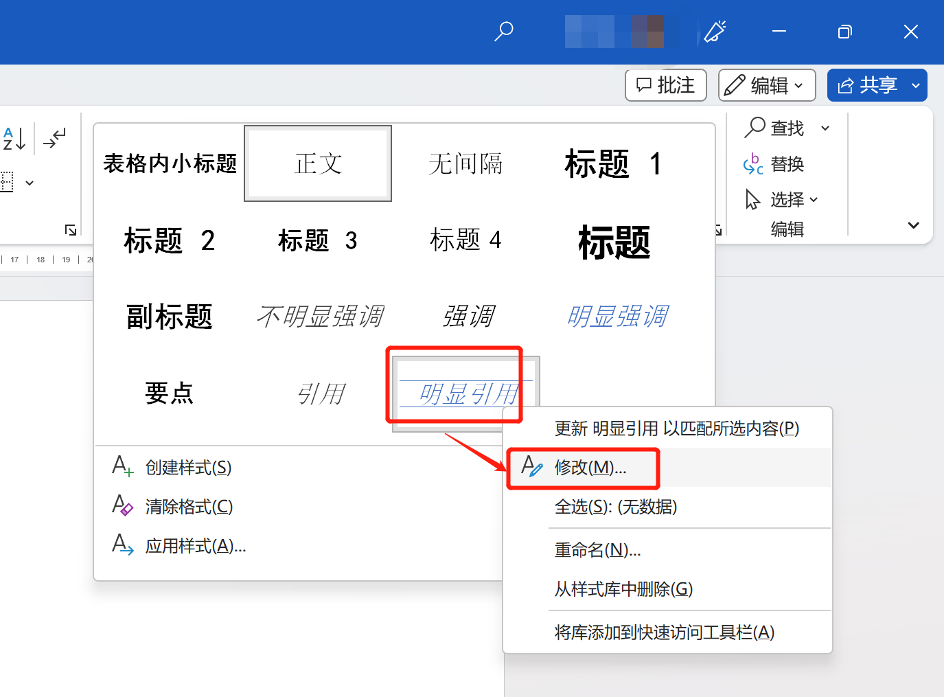 1、就像上图一样,选择准备删除的样式,右击选择修改