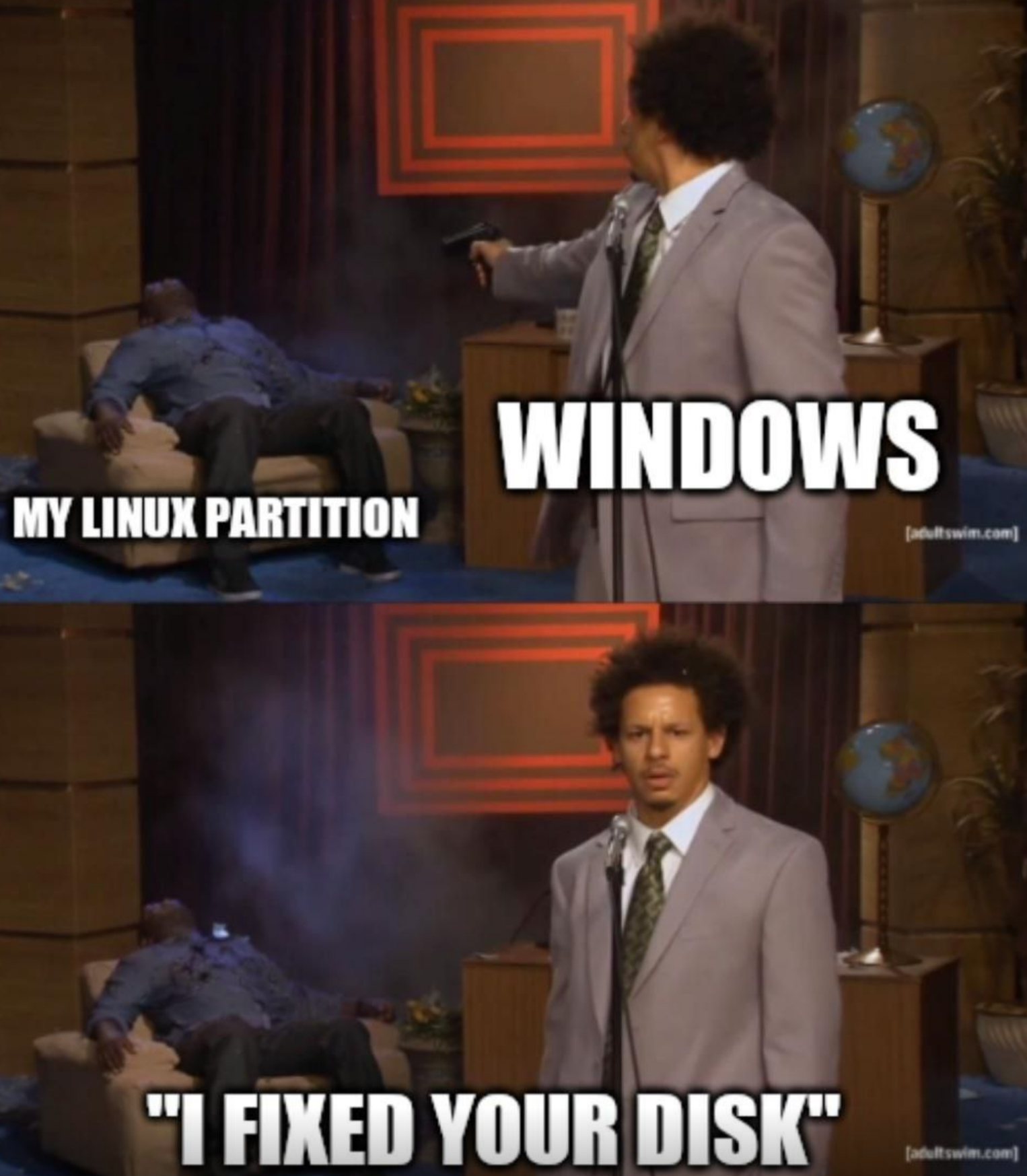 Windows用枪指着我的linux分区,开枪,然后说,我修理你的磁盘。