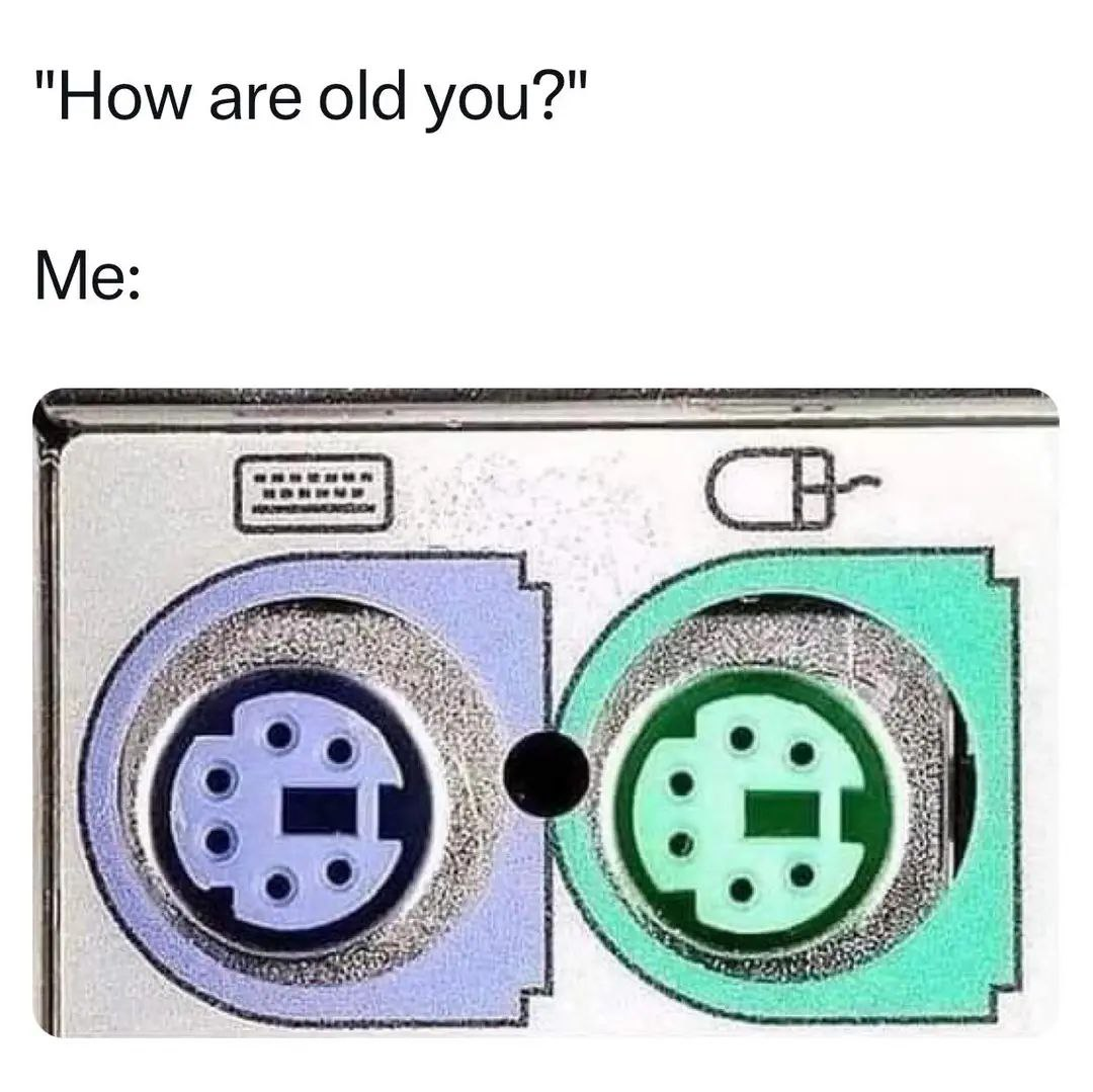 暴露年龄的一张图,如果你认识这两个接口的话,你至少40岁以上了。这是早期电脑的键盘和鼠标接口,PS/2接口
