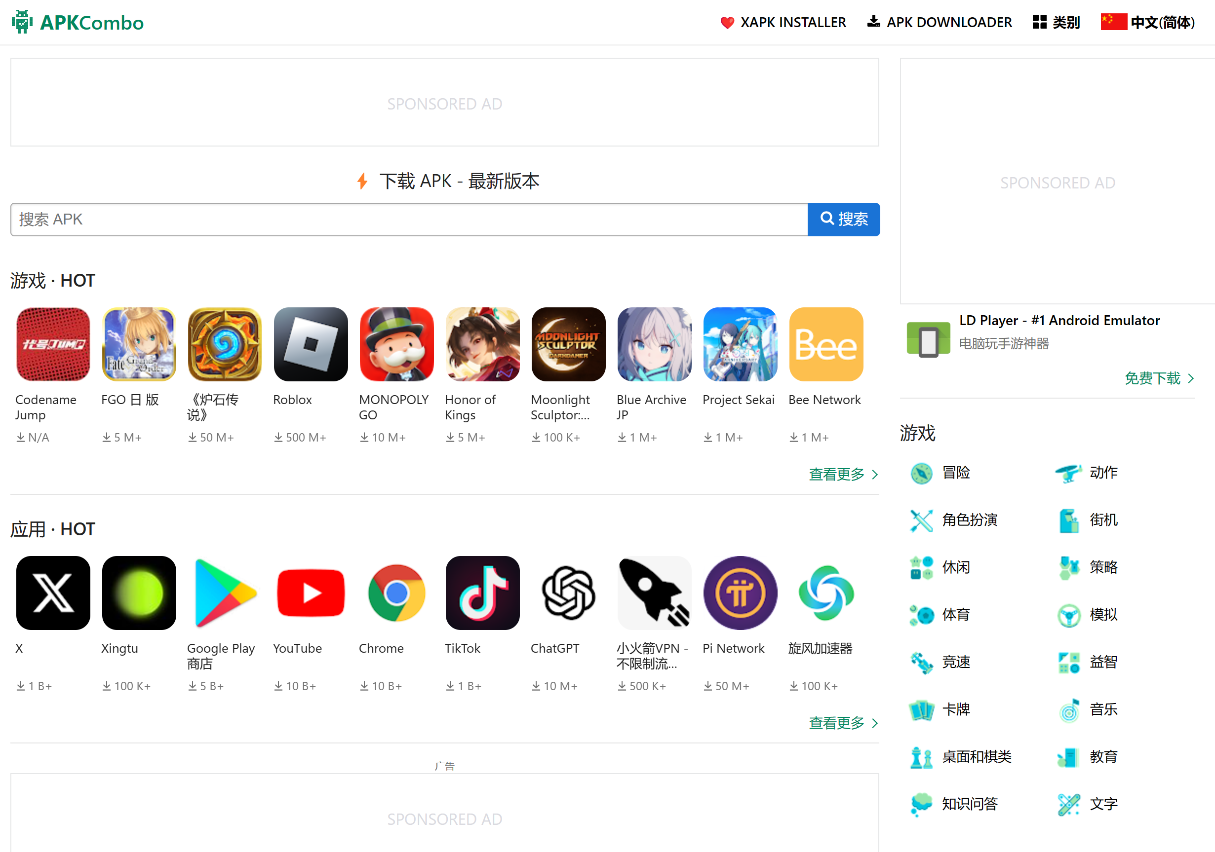 apkcombo也是一款apk收集整理类网站,界面一样的简洁,搜索下载也很容易,网站还支持中文,可以试试。