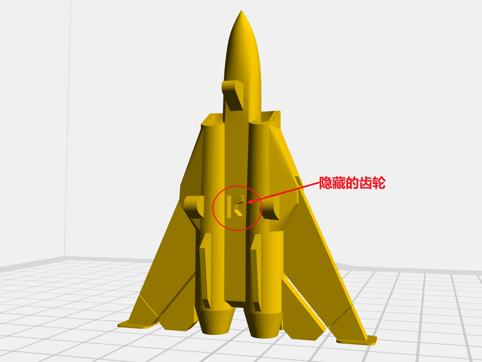 在机身里隐藏了一对齿轮,准确的说每个齿轮只有3-4个齿,两个齿轮互相咬合,可以让飞机的两个机翼向内收缩,或向外展开。