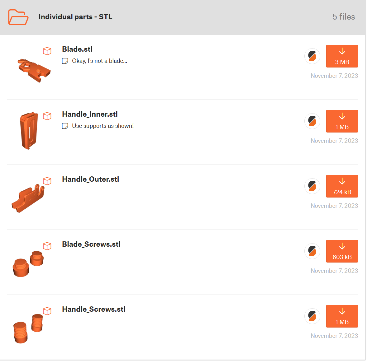 文件一共有5个,使用0.4mm喷嘴,PLA材料打印