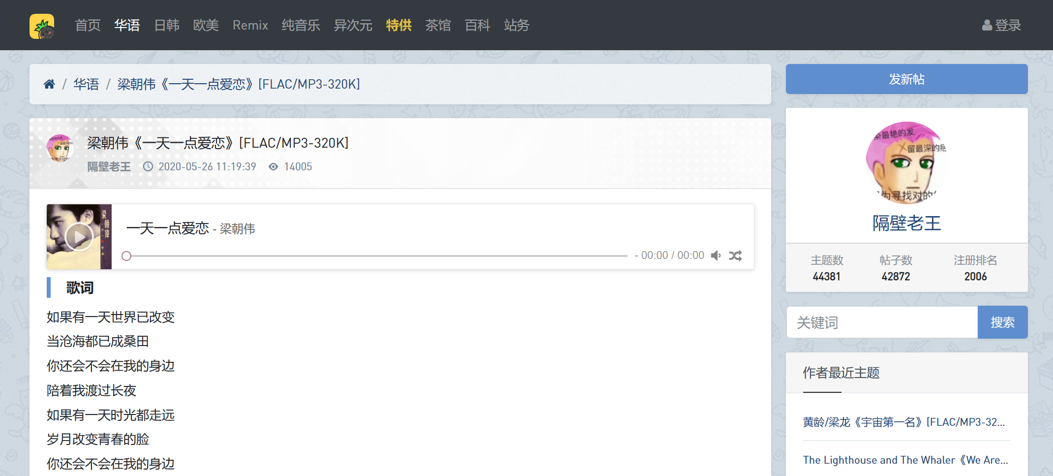 可以免费听歌下载的音乐论坛,格式都是无损的,喜欢的去看看.